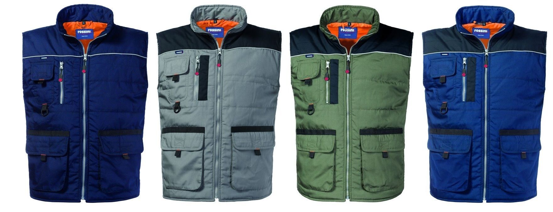 Gilet imbottito con chiusura anteriore con cerniera, elastico interno al giromanica antifreddo e antivento, coda di topo rifrangente al carré anteriore e posteriore.