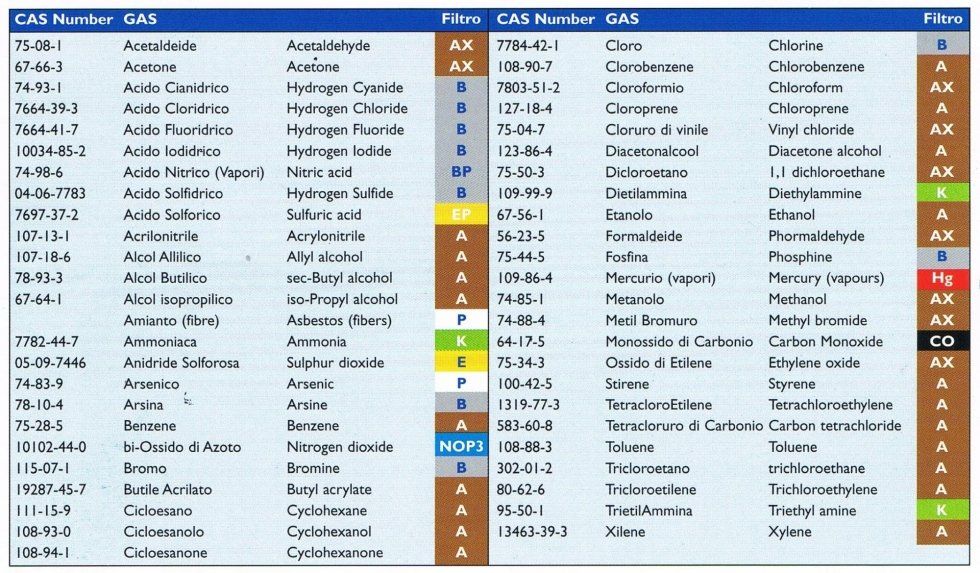 IMPIEGO DI FILTRI SUGGERITI PER LE SOSTANZE PIU' COMUNI